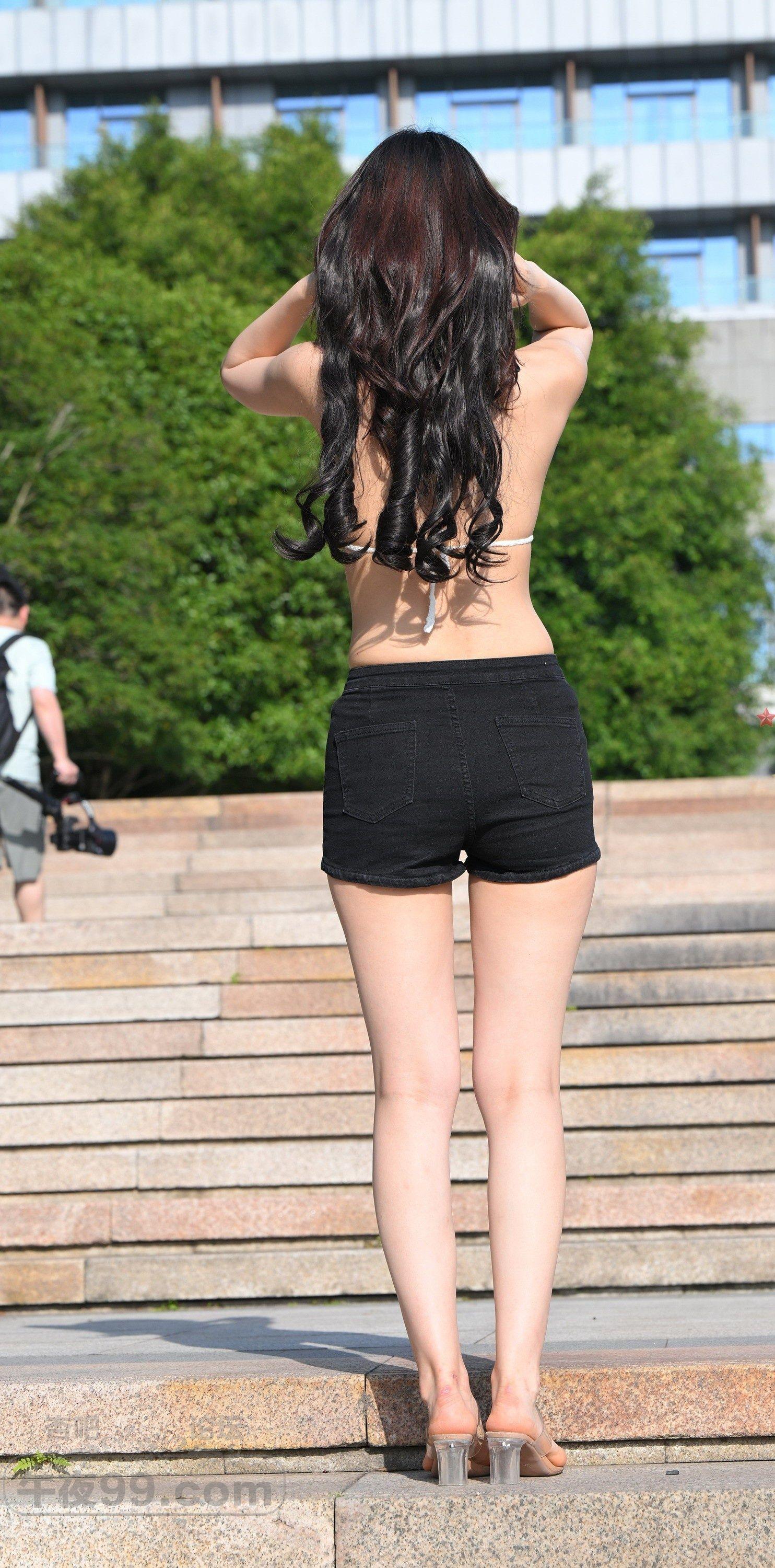 白色针织毛衣装黑色短裙美女光滑美背大长腿吸睛【10P】